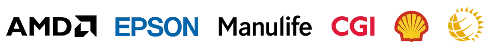 Air Miles, AMD, American Standard, BDO, Canada Life, CGI, Edgewell, Epson, Equitable Life, Imperial Oil, Manulife, Medtronic, MNP, RBC, SAP, Shell, Sobeys, Stantec, Suncor, Sun Life, TC Energy, Toyota, University of Toronto, and many more.