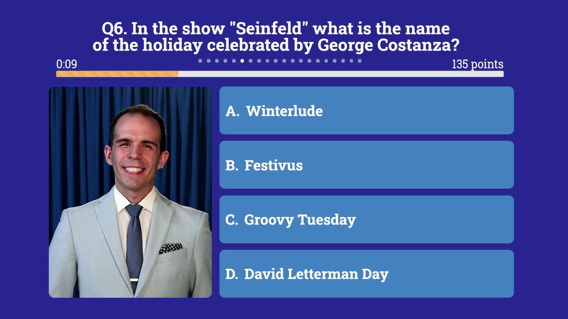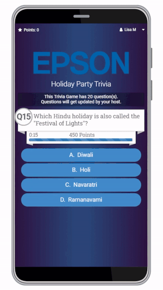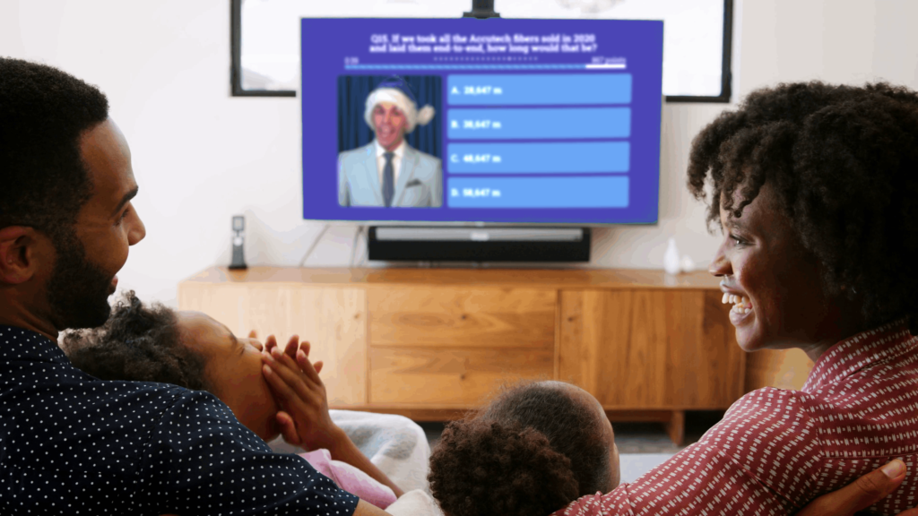 Everyone’s invited to pick up their phones and compete with their teammates during the live trivia game. Luckily, there’s nothing to download, and it’s accessible on any device.